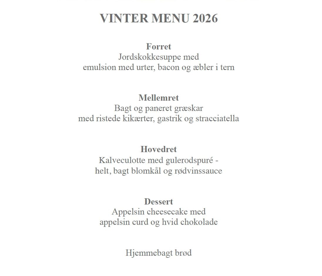 Læn jer tilbage og nyd jeres middag, som en ægte intim restaurantoplevelse. Vi hjælper med at servere og sørger for at skænke vine, rydde af og vaske op.
